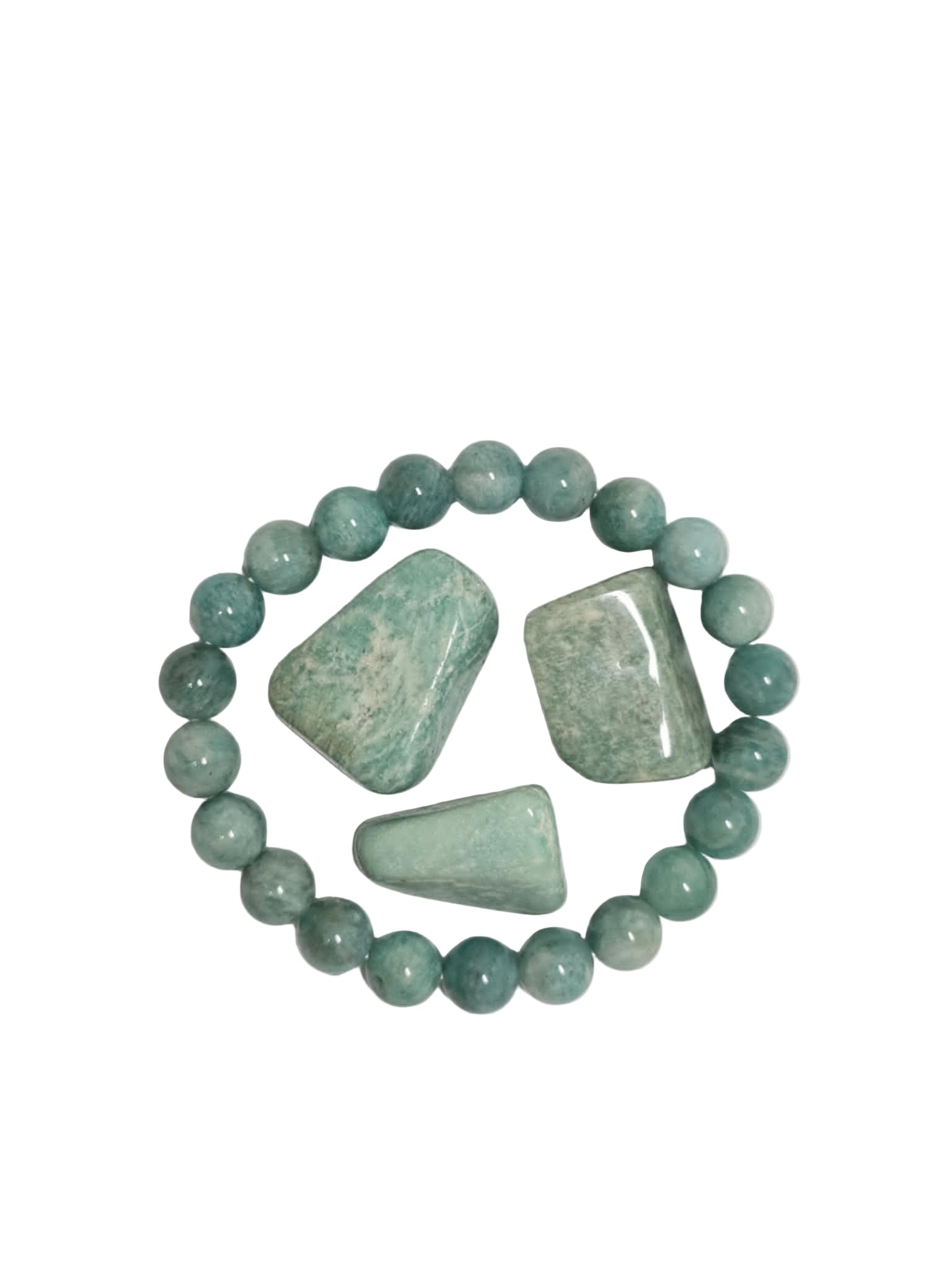 Amazonit är kristallen för lugn, balans och hjärtats kommunikation. Den sägs ta fram ditt inre barn och hjälper dig att uttrycka dig själv ärligt, släppa stress och öppna upp för glädje och lekfullhet. Bär den som en påminnelse om att lyssna på din inre röst, stå i din sanning och låta ditt inre barn få komma fram.